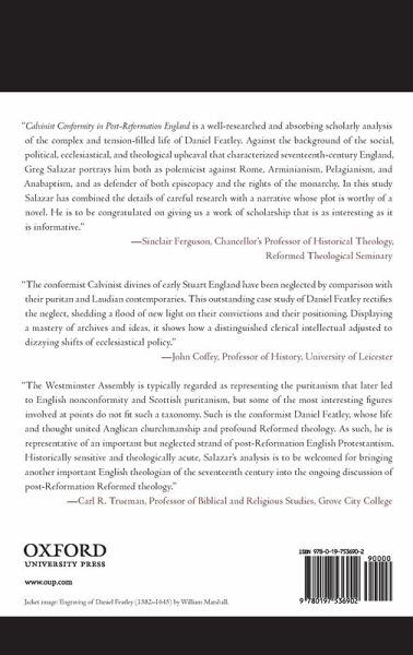 Calvinist Conformity in Post-Reformation England is the first modern full-scale examination of the theology and life of the distinguished English Calvinist clergyman Daniel Featley (1582-1645). It explores Featley's career and thought through a comprehensive treatment of his two dozen published works and manuscripts and situates these works within their original historical context. A fascinating figure, Featley was the youngest of the translators behind the Authorized Version, a protégé of John Rainolds, a domestic chaplain for Archbishop George Abbot, and a minister of two churches. As a result of his sympathies with royalism and episcopacy, he endured two separate attacks on his life. Despite this, Featley was the only royalist Episcopalian figure who accepted his invitation to the Westminster Assembly. Three months into the Assembly, however, Featley was charged with being a royalist spy, was imprisoned by Parliament, and died shortly thereafter. While Featley is a central focus of the work, this study is more than a biography. It uses Featley's career to trace the fortunes of Calvinist conformists--those English Calvinists who were committed to the established Church and represented the Church's majority position between 1560 and the mid-1620s, before being marginalized by Laudians in the 1630s and puritans in the 1640s. It demonstrates how Featley's convictions were representative of the ideals and career of conformist Calvinism, explores the broader priorities and political maneuvers of English Calvinist conformists, and offers a more nuanced perspective on the priorities and political maneuvers of these figures and the politics of religion in post-Reformation England.