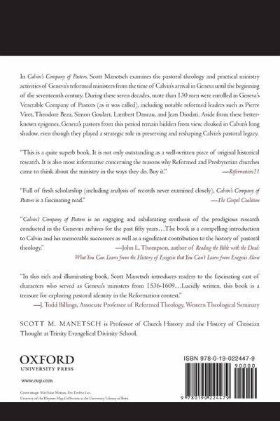 In Calvin's Company of Pastors, Scott Manetsch examines the pastoral theology and practical ministry activities of Geneva's reformed ministers from the time of Calvin's arrival in Geneva until the beginning of the seventeenth century.