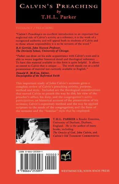 A rare and important study offering a complete review of John Calvin's preaching activity, purpose, method, and style. Parker's work includes Calvin's theological considerations, expository methods, applications of Scripture to the needs of his congregation, and his views of the preacher's office, duty and the congregation's active participation. Appendixes.