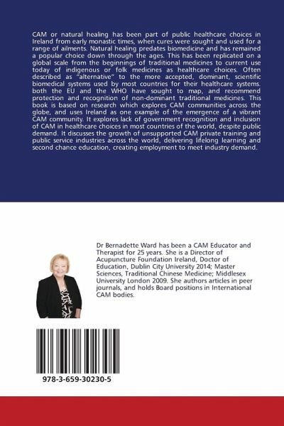CAM or natural healing has been part of public healthcare choices in Ireland from early monastic times, when cures were sought and used for a range of ailments. Natural healing predates biomedicine and has remained a popular choice down through the ages. This has been replicated on a global scale from the beginnings of traditional medicines to current use today of indigenous or folk medicines as healthcare choices. Often described as "alternative" to the more accepted, dominant, scientific biomedical systems used by most countries for their healthcare systems. both the EU and the WHO have sought to map, and recommend protection and recognition of non-dominant traditional medicines. This book is based on research which explores CAM communities across the globe, and uses Ireland as one example of the emergence of a vibrant CAM community. It explores lack of government recognition and inclusion of CAM in healthcare choices in most countries of the world, despite public demand. It discusses the growth of unsupported CAM private training and public service industries across the world, delivering lifelong learning and second chance education, creating employment to meet industry demand.