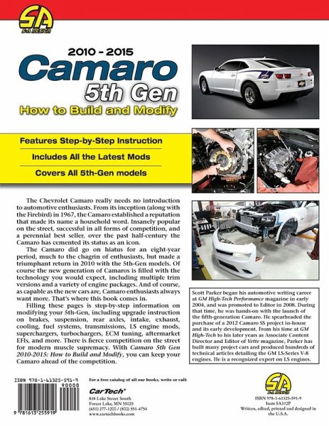 The photos in this edition are black and white. Boost your 2010-2015 Chevrolet Camaro’s horsepower in addition to its braking and cornering abilities by using proven modifications. This book includes instruction about brakes, suspension, rear axles, intake and exhaust, cooling, fuel systems, transmissions, LS engine mods, superchargers, turbochargers, ECM tuning, aftermarket EFIs, and more. The Chevrolet Camaro really needs no introduction to automotive enthusiasts. From its inception (along with the Firebird) in 1967, the Camaro established a reputation that made its name a household word. Insanely popular on the street, successful in all forms of competition, and a perennial best seller, over the past half-century the Camaro has cemented its status as an icon. The Camaro went on hiatus for an 8-year period, much to the chagrin of Chevrolet, but made a triumphant return in 2010 with the 5th Gen models. Of course, the new generation of Camaros is filled with the technology you would expect, including multiple trim versions and a variety of engine packages. And of course, as capable as the new cars are, Camaro enthusiasts always want more. That's where this book comes in. There is fierce competition on the street for modern muscle supremacy. With Camaro 5th Gen 2010-2015: How to Build and Modify, you can keep your Camaro ahead of the competition.