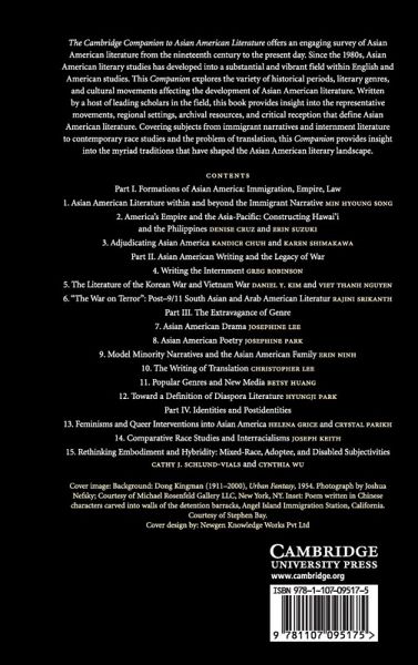 The Cambridge Companion to Asian American Literature offers an engaging survey of Asian American literature from the nineteenth century to the present day. Since the 1980s, Asian American literary studies has developed into a substantial and vibrant field within English and American Studies. This Companion explores the variety of historical periods, literary genres and cultural movements affecting the development of Asian American literature. Written by a host of leading scholars in the field, this book provides insight into the representative movements, regional settings, archival resources and critical reception that define Asian American literature. Covering subjects from immigrant narratives and internment literature to contemporary race studies and the problem of translation, this Companion provides insight into the myriad traditions that have shaped the Asian American literary landscape.