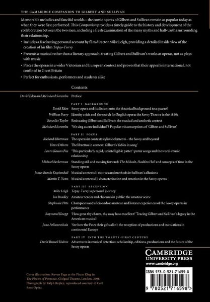 Preface David Eden and Meinhard Saremba; Part I. Background: 1. Savoy Opera and its discontents: the theatrical background to a quarrel David Eden; 2. Identity crisis and the search for English opera: the Savoy Theatre in the 1890s William Parry; 3. Resituating Gilbert and Sullivan: the musical and aesthetic context Benedict Taylor; 4. 'We sing as one individual'?: popular misconceptions of 'Gilbert and Sullivan' Meinhard Saremba; Part II. Focus: 5. The operas in context: stylistic elements - the Savoy and beyond Richard Silverman; 6. The librettos in context: Gilbert's 'Fables in Song' Horst Dölvers; 7. 'This particularly rapid, unintelligible patter': patter songs and the word-music relationship Laura Kasson Fiss; 8. Standing still and moving forward: The Mikado, Haddon Hall, and concepts of time in the Savoy Operas Michael Beckerman; 9. Musical contexts I: motives and methods in Sullivan's allusions James Brooks Kuykendall; 10. Musical contexts II: characterisation and emotion in the Savoy Operas Martin T. Yates; Part III. Reception: 11. Topsy-Turvy: a personal journey Mike Leigh; 12. Amateur tenors and choruses in public: the amateur scene Ian Bradley; 13. Champions and aficionados: amateur and listener experiences of the Savoy Operas in performance Stephanie Pitts; 14. 'How great thy charm, thy sway how excellent!': tracing Gilbert and Sullivan's legacy in the American musical Raymond Knapp; 15. 'See how the Fates their gifts allot': the reception of productions and translations in Continental Europe Jana Polianovskaia; Part IV. Into the Twenty-First Century: 16. Adventures in musical detection: scholarship, editions, productions and the future of the Savoy Operas David Russell Hulme; Appendix 1: Alphabetical list of stage and choral works by Arthur Sullivan and W. S. Gilbert; Appendix 2: Modern editions of works by Arthur Sullivan and W. S. Gilbert.