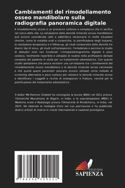 Il rimodellamento osseo è un processo continuo e complesso che si verifica nel corso della vita. La valutazione della densità minerale ossea mandibolare può essere considerata utile o addirittura necessaria in molte situazioni cliniche, come le malattie orali e sistemiche, la pianificazione degli impianti, la valutazione terapeutica e il follow-up, gli studi comparativi della densità tra diversi tipi di ossa, gli studi sull'osteoporosi, l'ortodonzia e persino lo studio di abitudini orali non funzionali. L'ortopantomogramma digitale è poco costoso, facilmente reperibile e utilizzato di routine nella profilazione dentale completa del paziente in visita per un trattamento odontoiatrico. Con questo studio ipotizziamo che possa esistere una correlazione tra i cambiamenti del rimodellamento osseo mandibolare e la densità minerale ossea calcaneale e che quindi questi parametri possano essere utilizzati come metodo di screening alternativo e poco costoso per valutare la densità minerale ossea e identificare i soggetti a rischio di osteoporosi e fratture, nonché per la pianificazione del trattamento odontoiatrico.