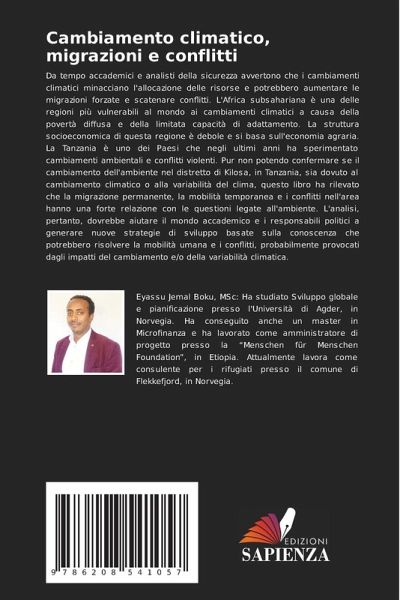 Da tempo accademici e analisti della sicurezza avvertono che i cambiamenti climatici minacciano l'allocazione delle risorse e potrebbero aumentare le migrazioni forzate e scatenare conflitti. L'Africa subsahariana è una delle regioni più vulnerabili al mondo ai cambiamenti climatici a causa della povertà diffusa e della limitata capacità di adattamento. La struttura socioeconomica di questa regione è debole e si basa sull'economia agraria. La Tanzania è uno dei Paesi che negli ultimi anni ha sperimentato cambiamenti ambientali e conflitti violenti. Pur non potendo confermare se il cambiamento dell'ambiente nel distretto di Kilosa, in Tanzania, sia dovuto al cambiamento climatico o alla variabilità del clima, questo libro ha rilevato che la migrazione permanente, la mobilità temporanea e i conflitti nell'area hanno una forte relazione con le questioni legate all'ambiente. L'analisi, pertanto, dovrebbe aiutare il mondo accademico e i responsabili politici a generare nuove strategie di sviluppo basate sulla conoscenza che potrebbero risolvere la mobilità umana e i conflitti, probabilmente provocati dagli impatti del cambiamento e/o della variabilità climatica.