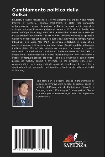 Il Golkar, in quanto trendsetter e colonna portante dell'era del Nuovo Ordine (regime di Soeharto, periodo 1966-1998), è stato così dominante nell'organizzare e giocare la politica del Paese in quasi tutti i campi dello sviluppo nazionale. Il dominio è diventato sempre più fuori controllo da parte dell'opinione pubblica (leggi: non-Golkar, PPP-Partito Unitario per lo Sviluppo, Partito Democratico Indonesiano-PDI e altre comunità critiche) da quando il Golkar ha collaborato con l'ABRI e la burocrazia attraverso la Famiglia Golkar (KBG/BEC) o la Linea ABG (ABRI, Burocrazia e Golkar), in modo che il processo politico e di governo sia autocratico. Questo modello autocratico (nell'era della riforma) sta cambiando sempre più verso un modello democratico immediato dal movimento di riforma nazionale del 1998. In questo libro, l'autore descrive in modo fattuale-empirico - con riferimento al quadro concettuale-teorico costruito - come è avvenuto il cambiamento politico del Golkar, perché è avvenuto, in che direzione sono stati i cambiamenti e come sono stati gli impatti dei cambiamenti, sia a livello strutturale a livello nazionale che interattivo a livello locale nella municipalità di Bandung.