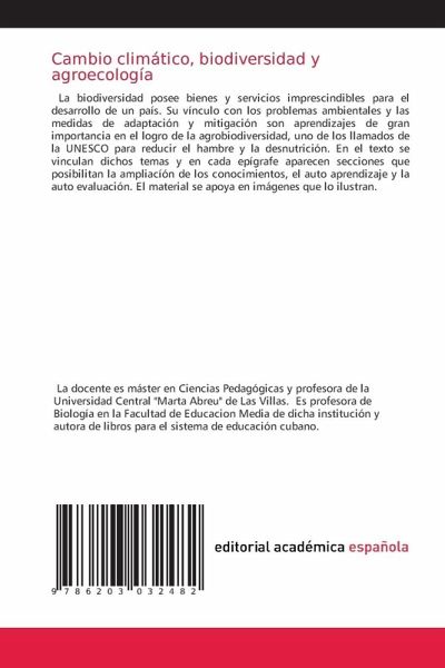 La biodiversidad posee bienes y servicios imprescindibles para el desarrollo de un país. Su vínculo con los problemas ambientales y las medidas de adaptación y mitigación son aprendizajes de gran importancia en el logro de la agrobiodiversidad, uno de los llamados de la UNESCO para reducir el hambre y la desnutrición. En el texto se vinculan dichos temas y en cada epígrafe aparecen secciones que posibilitan la ampliacíón de los conocimientos, el auto aprendizaje y la auto evaluación. El material se apoya en imágenes que lo ilustran.