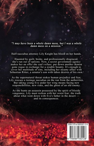 "I may have been a whole damn mess, but I was a whole damn mess on a mission." Half-succubus attorney Lily Knight has blood on her hands. Haunted by guilt, broke, and professionally disgraced, she's run out of options. Now, a secret government agency makes her an offer she can't refuse: put down another demon gone rogue. In exchange, she'll earn a sizable bounty--enough to cover her multitude of sins, including her steamy affair with Sebastian Ritter, a senator's son with taboo desires of his own. As the supernatural threat stokes human prejudice and fear, Lily rescues a teenage succubus on the run from the authorities. But taking young Eve under her wing means facing new responsibilities, new risks, and the ghost of an old enemy. As she hunts an assassin possessed by the spirit of bloody vengeance, Lily must reckon with her worst fear: the truth about what went down with Eve's father in the desert--and its consequences.