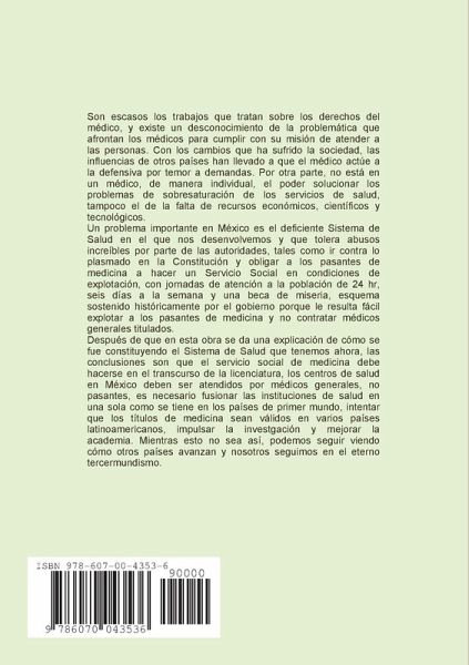 Libro que analiza el Sistema de Salud Mexicano, sus debilidades desde el momento en que fue concebido de manera fragmentaria. Aporta argumentos para modificar el Servicio Social en medicina, pues, tal como está, viola artículos de la Constitución Mexicana, pero que, desafortundamente, es sostenido por el Gobierno Mexicano, pues la sale más barato dar becas de miseria a pasantes que contratar médicos generales o familiares titulados para mejorar el sistema de Atención Primaria de todo el país.