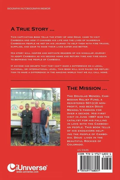 On the morning of April 8, 2006, a pale green, twenty-eight-foot-long, 1976 FireMaster fire truck-Engine 633-drove away from a port in Sihanoukville, Cambodia, after traveling some 8,500 miles from Colorado's Rocky Mountains. It had just cleared customs and was en route to a small fire station six kilometers away. Just two years before that, Captain Sok, Sihanoukville's fire chief, told author Douglas Mendel that his town was in need of a new fire truck. Mendel made it happen. In Cambodia Fire, Mendel shares the story of how he came to visit Cambodia, how it changed his life and the lives of numerous Cambodian people, and how he began his journey to help them with firetrucks, supplies, and gear to make their lives safer and better. This memoir tells how the delivery of the fire truck was only one of dozens of projects and years of work in connection with the Douglas Mendel Cambodian Relief Fund. Cambodia Fire narrates how the country of Cambodia and its warm, loving people have shaped the last seventeen years of Mendel's life.