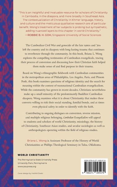 The Cambodian Civil War and genocide of the late 1960s and '70s left the country and its diaspora with long-lasting trauma that continues to reverberate through the community. In this book, Briana L. Wong explores the compelling stories of Cambodian evangelicals, their process of conversion, and how their testimonials to the Christian faith helped them to make sense of and find purpose in their trauma. Based on ethnographic fieldwork with Cambodian communities in the metropolitan areas of Philadelphia, Los Angeles, Paris, and Phnom Penh, Wong examines questions of religious identity and the search for meaning within the context of transnational Cambodian evangelicalism. While the community has grown in recent decades, Christians nevertheless make up a small minority of the predominantly Buddhist diaspora. Wong explores what it is about Christianity that makes these converts willing to risk their social standing, familial bonds,and, in certain cases, physical safety in order to identify with the faith. Contributing to ongoing dialogues on conversion, reverse mission, and multiple religious belonging, this book will appeal to students and scholars of world Christianity, missiology, and the history of Christianity, as well as Southeast Asian studies, secular sociologies, and anthropologists operating within the field of religious studies.
