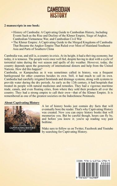 If you want to discover the captivating history of Cambodia, then keep reading... Two captivating manuscripts in one book:History of Cambodia: A Captivating Guide to Cambodian History, Including Events Such as the Rise and Decline of the Khmer Empire, Siege of Angkor, Cambodian-Vietnamese War, and Cambodian Civil War The Khmer Empire: A Captivating Guide to the Merged Kingdoms of Cambodia That Became the Angkor Empire That Ruled over Most of Mainland Southeast Asia and Parts of Southern China Did you know that Cambodia is home to Angkor Wat, the world's largest religious building? In 2009, a Cambodian historian took several walking tours of the war-ravaged country. He took photos, and one shows a discarded broken Buddhist statue lying in the green grasses beneath his feet. The artifact possibly dates back to the 1st century CE. Yet it lay there abandoned, instead of being housed in an honored place inside a glass cabinet in a museum. Scholars bemoan the fact that the deeds and even the names of Cambodian kings from its early times have faded like ghosts into the ethereal world of unwritten history. However, what is ensconced in glass cabinets in Cambodian museums are the many skulls of those who were executed by one of the most brutal regimes in the history of the world. Cambodia, or, as it was once known, Kampuchea, is a beautiful country, replete with an incredibly wondrous system of canals. But its history has been marked by the Khmer Rouge and Pol Pot, which brought the nation to its knees. Although it has risen from the ashes of genocide, it is still facing a major crisis today. Travel back in time to learn about Cambodia's past, one that was greatly influenced by various religions. For centuries, their beleaguered country was the battleground of many countries other than their own, and during the 20th century, their own men turned on each other. Some of the topics covered in part 1 of this book include:Cambodian prehistory The early kings of Cambodia Religious and regional influences The rise and fall of the Khmer Empire The French protectorate The Khmer Rouge and the Cambodian Civil War The Cambodian genocide Cambodia today And more Some of the topics covered in part 2 of this book include:Who were the Khmer people? Who was the devaraja that founded the Empire of Angkor? What is the symbolism behind some of the greatest temples in the world? Who built Angkor Wat, and with what purpose? How did a whole nation convert to Buddhism in under one century? Who was Jayavarman VII, and what made him the most powerful king of the Khmer? How did such a great empire fall into oblivion? How was it rediscovered and rebuilt? And much more! Scroll up and click the "add to cart" button to learn more about the History of Cambodia and the Khmer Empire!