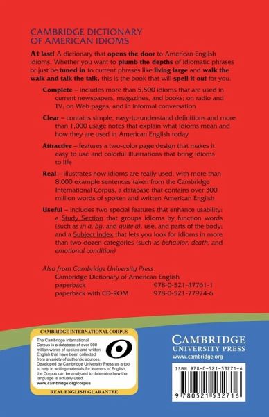 Enthält über 5.000 aktuelle idiomatische Wendungen aus dem amerikanischen Englisch mit veranschaulichenden Beispielsätzen.