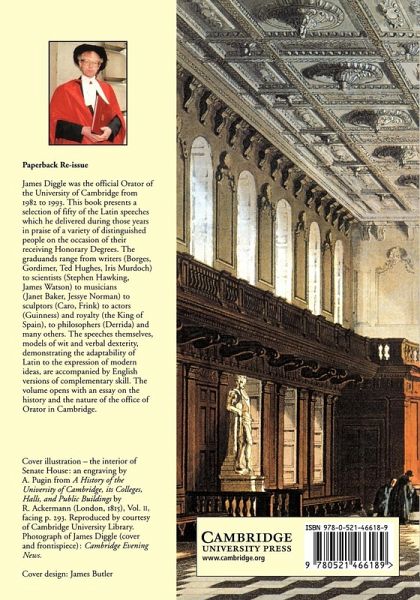 James Diggle was the official Orator of the University of Cambridge from 1982 to 1993. This book presents a selection of fifty of the Latin speeches which he delivered during those years in praise of a variety of distinguished people on the occasion of their receiving Honorary Degrees. The graduands range from writers (Borges, Gordimer, Ted Hughes, Iris Murdoch) to scientists (Stephen Hawking, James Watson) to musicians (Janet Baker, Jessye Norman) to sculptors (Anthony Caro, Elisabeth Frink) to actors (Alec Guinness) and royalty (the King of Spain), to philosophers (Jacques Derrida) and many others. The speeches themselves, models of wit and verbal dexterity, demonstrating the adaptability of Latin to the expression of modern ideas, are accompanied by English versions of complementary skill. The volume opens with an essay on the history and nature of the office of Orator in Cambridge.