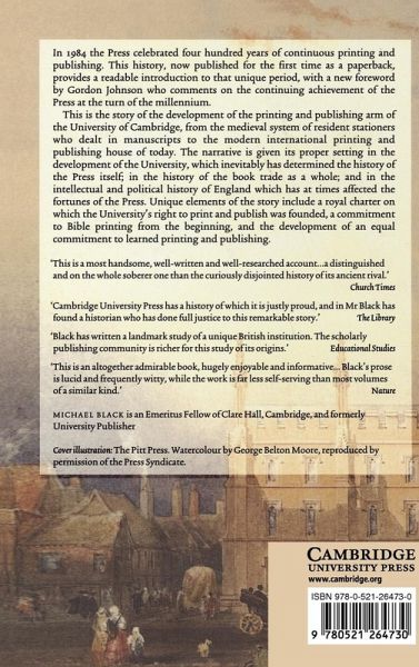 In 1984 the Press celebrated 400 years of continuous printing and publishing. This history, now published as a paperback, provides a readable introduction to that unique period, with a foreword by Gordon Johnson which comments on the continuing achievement of the Press. The story is of the development of the printing and publishing arm of the University of Cambridge, from the medieval system of resident stationers to the modern international printing and publishing house. The narrative is set within the development of the University; in the history of the book trade as a whole; and in the intellectual and political history of England.
