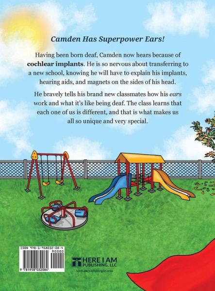 Having been born deaf, Camden now hears because of cochlear implants. He is nervous about transferring to a new school because he knows he will have to explain his ears to the students. When he gets to school, he meets the principal and his new teacher. They are very nice to Camden. The teacher introduces him to his new classmates, and they enjoy learning about his cochlear implants, which allow him to hear. If he wasn't wearing the ears, he would not be able to hear anything. The students end up thinking Camden's super ears are cool.