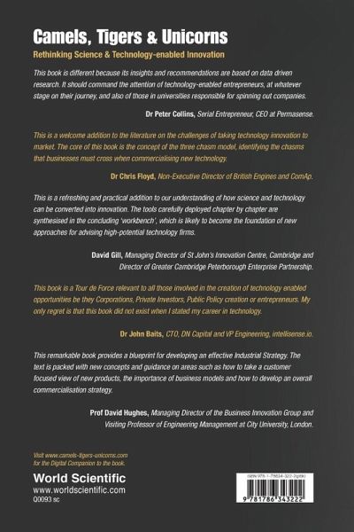 The commercialisation of science and technology enabled innovation is a serious topic of interest for a wide range of global audiences who share one common objective: to understand how science and technology based ideas can be turned into commercial value more effectively. Despite the vast number of publications addressing entrepreneurship, innovation and strategy there is relatively little in the literature which systematically addresses the structures, processes and mechanisms involved in turning ideas into commercially valuable propositions: this book is intended to directly address this gap. The approach in Camels, Tigers & Unicorns consists of three fundamental strands: Research insights based on Phadke and Vyakarnam's large data set covering the different players, technologies, products and services, market spaces, customers and business models The creation of an explicit new conceptual framework which provides an integrated narrative describing how science and technology-enabled innovation is commercialised The provision of tools and examples which can be used by firms to develop strategies, agree on priorities and generate plans. The contents of this book should be of interest to a wide range of audiences including entrepreneurs; leaders and managers in technology firms; scientists and technologists engaged in innovation in academic institutions and corporate environments; lone inventors; groups of scientific entrepreneurs operating outside recognised structures; business and strategy consultants; managers of public and private 'intervention agencies' such as incubators and accelerators; investors; and, policy makers.