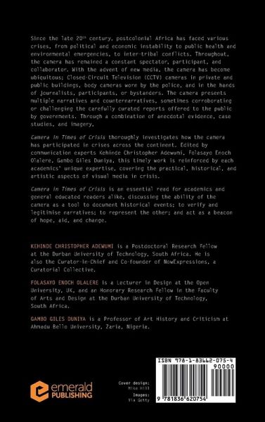 Edited by communication experts Kehinde Christopher Adewumi, Folasayo Enoch Olalere, Gambo Giles Duniya, this timely work is reinforced by each academicsâ unique expertise, covering the practical, historical, and artistic aspects of visual media in crisis.