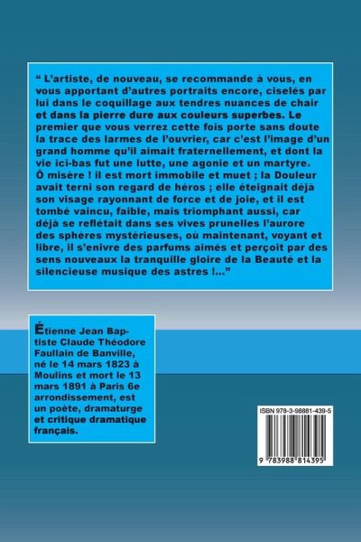 " L'artiste, de nouveau, se recommande à vous, en vous apportant d'autres portraits encore, ciselés par lui dans le coquillage aux tendres nuances de chair et dans la pierre dure aux couleurs superbes. Le premier que vous verrez cette fois porte sans doute la trace des larmes de l'ouvrier, car c'est l'image d'un grand homme qu'il aimait fraternellement, et dont la vie ici-bas fut une lutte, une agonie et un martyre. Ô misère ! il est mort immobile et muet ; la Douleur avait terni son regard de héros ; elle éteignait déjà son visage rayonnant de force et de joie, et il est tombé vaincu, faible, mais triomphant aussi, car déjà se reflétait dans ses vives prunelles l'aurore des sphères mystérieuses, où maintenant, voyant et libre, il s'enivre des parfums aimés et perçoit par des sens nouveaux la tranquille gloire de la Beauté et la silencieuse musique des astres !..."