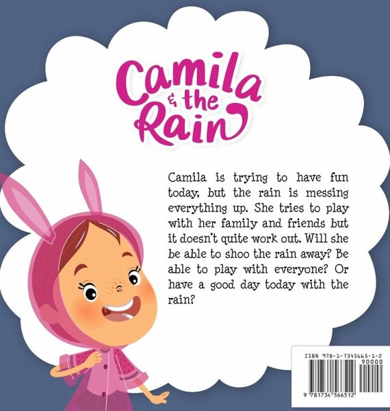 Camila & The Rain Camila is trying to have fun, but the rain is messing everything up! She tries to play with her family and friends, but it doesn't quite work out. Will she able to shoo the rain away, be able to play with everyone or have a good day today? Camila & The Rain is a story about a little girl who learns that through independent thinking, self-awareness, imagination, and resiliency any rainy day is a fun day. It also touches upon the themes of influencing others while doing and family time. The themes explored in this story are: -social and emotional learning-independent and flexible thinking-imaginative play-growth mindset-positive attitude-influence & motivation-positive family time It is a story to read out loud, enjoy and discuss amongst everyone in the family.