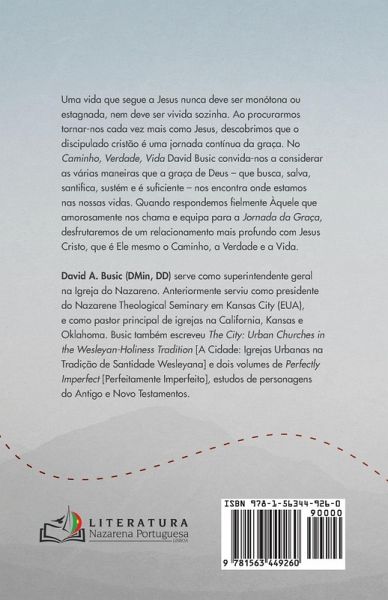 Uma vida que segue a Jesus nunca deve ser monótona ou estagnada, nem deve ser vivida sozinha. Ao procurarmos tornar-nos cada vez mais como Jesus, descobrimos que o discipulado cristão é uma jornada contínua da graça. No Caminho, Verdade, Vida David Busic convida-nos a considerar as várias maneiras que a graça de Deus - que busca, salva, santifica, sustém e é suficiente - nos encontra onde estamos nas nossas vidas. Quando respondemos fielmente Àquele que amorosamente nos chama e equipa para a Jornada da Graça, desfrutaremos de um relacionamento mais profundo com Jesus Cristo, que é Ele mesmo o Caminho, a Verdade e a Vida. David A. Busic (DMin, DD) serve como superintendente geral na Igreja do Nazareno. Anteriormente serviu como presidente do Nazarene Theological Seminary em Kansas City (EUA), e como pastor principal de igrejas na California, Kansas e Oklahoma. Busic também escreveu The City: Urban Churches in the Wesleyan-Holiness Tradition [A Cidade: Igrejas Urbanas na Tradição de Santidade Wesleyana] e dois volumes de Perfectly Imperfect [Perfeitamente Imperfeito], estudos de personagens do Antigo e Novo Testamentos.