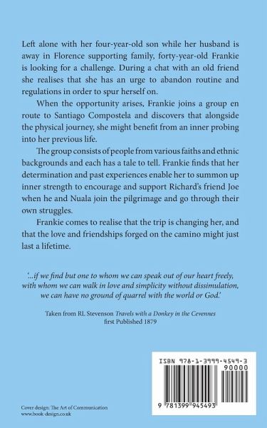 Left alone with her four-year-old son while her husband is away in Florence supporting family, forty-year-old Frankie is looking for a challenge. During a chat with an old friend she realises that she has an urge to abandon routine and regulations in order to spur herself on. When the opportunity arises, Frankie joins a group en route to Santiago Compostela and discovers that alongside the physical journey, she might benefit from an inner probing into her previous life. The group consists of people from various faiths and ethnic backgrounds and each has a tale to tell. Frankie finds that her determination and past experiences enable her to summon up inner strength to encourage and support Richard's friend Joe when he and Nuala join the pilgrimage and go through their own struggles. Frankie comes to realise that the trip is changing her, and that the love and friendships forged on the camino might just last a lifetime. '...if we find but one to whom we can speak out of our heart freely,with whom we can walk in love and simplicity without dissimulation,we can have no ground of quarrel with the world or God.'¿Taken from RL Stevenson Travels with a Donkey in the Cevennesfirst Published 1879