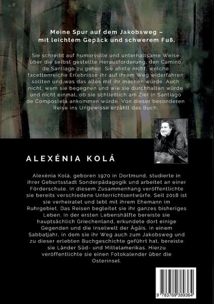 Alexeniá Kolá schreibt auf humorvolle und unterhaltsame Weise über die selbst gestellte Herausforderung, den Camino de Santiago zu gehen. Sie ahnte nicht, welche facettenreichen Erlebnisse ihr auf ihrem Weg widerfahren sollten und was das alles mit ihr machen würde. Auch nicht, wem sie begegnen und wie sie durchhalten würde und nicht einmal, ob sie schließlich am Ziel in Santiago de Compostela ankommen würde. Von dieser besonderen Reise ins Ungewisse erzählt das Buch.