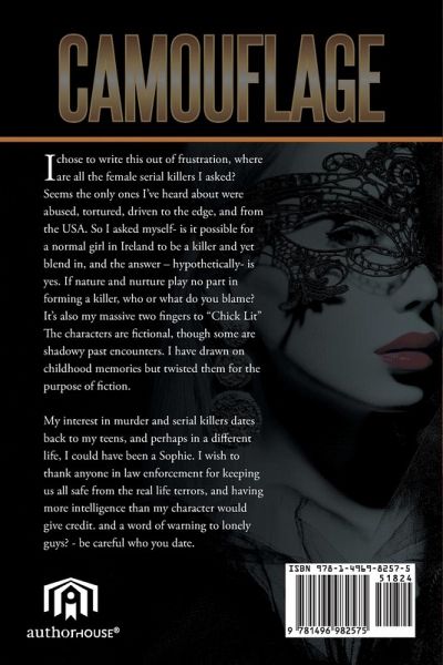 I chose to write this out of frustration, where are all the female serial killers I asked? Seems the only ones I've heard about were abused, tortured, driven to the edge, and from the USA. So I asked myself- is it possible for a normal girl in Ireland to be a killer and yet blend in, and the answer - hypothetically- is yes. If nature and nurture play no part in forming a killer, who or what do you blame? It's also my massive two fingers to "Chick Lit" The characters are fictional, though some are shadowy past encounters. I have drawn on childhood memories but twisted them for the purpose of fiction. My interest in murder and serial killers dates back to my teens, and perhaps in a different life, I could have been a Sophie. I wish to thank anyone in law enforcement for keeping us all safe from the real life terrors, and having more intelligence than my character would give credit. and a word of warning to lonely guys? - be careful who you date.
