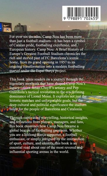 For over six decades, the Camp Nou has been more than just a football stadium-it has been a symbol of Catalan pride, footballing excellence, and European history. Camp Nou: A Brief History of Europe's Greatest Football Stadium chronicles the rich and storied past of FC Barcelona's iconic home, from its grand opening in 1957 to its ongoing transformation into a modern footballing marvel under the Espai Barça project. This book takes readers on a journey through the legendary moments that have shaped Camp Nou's legacy-from Johan Cruyff's artistry and Pep Guardiola's tactical revolution to the era-defining dominance of Lionel Messi. It explores not just the historic matches and unforgettable goals, but the deep cultural and political significance the stadium holds for the people of Barcelona and Catalonia. Through captivating storytelling, historical insights, and reflections from players, managers, and fans, this book examines how Camp Nou became a global beacon of footballing greatness. Whether you are a lifelong Barça supporter, a football enthusiast, or simply intrigued by the intersection of sport, culture, and identity, this book is an essential read about one of the most revered and influential sporting arenas in the world.
