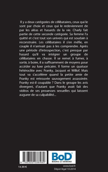 Il y a deux catégories de célibataires, ceux qui le sont par choix et ceux qui le redeviennent de par les aléas et hasards de la vie. Charly fait partie de cette seconde catégorie. Sa femme l'a quitté et c'est tout son univers qui est soudain à reconstruire. Les célibataires il s'en méfie, en couple il n'arrivait pas à les comprendre. Après une période d'introspection, c'est presque par hasard qu'il va intégrer un groupe de célibataires en chasse. Il se remet à fumer, à sortir, à boire, il a suffisamment de moyens pour accéder au luxe précaire. Il forme un quatuor hétéroclite avec Franky, Jacquot et Willof. Mais tout va s'accélérer quand la petite amie de Franky est retrouvée sauvagement assassinée. Franky est-il coupable ? Dans le groupe les avis divergent, d'autant que Franky avait fait des vidéos de ses prouesses sexuelles qui laissent arguer de sa culpabilité...