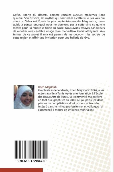 Gafsa, "porte du désert", comme certains auteurs modernes l'ont qualifié. Son histoire, les mythes qui sont reliés à cette ville, les voix qui crient " Gafsa est l'oasis la plus septentrionale du Maghreb ", nous guide à penser pourquoi nous ne donnons pas à cette ville ce qu'elle mérite pour lui rendre sa fierté du passé. Nous avons essayés par ailleurs de montrer une véritable image d'un merveilleux Gafsa attrayante. Aux termes de ce projet il m'a été permis de me découvrir les secrets de cette région et offrir une invitation pour une ballade de rêve.
