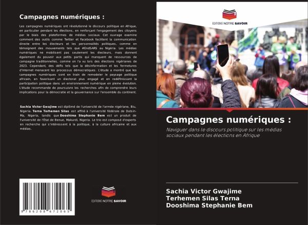 Les campagnes numériques ont révolutionné le discours politique en Afrique, en particulier pendant les élections, en renforçant l'engagement des citoyens par le biais des plateformes de médias sociaux. Cet ouvrage examine comment des outils comme Twitter et Facebook facilitent la communication directe entre les électeurs et les personnalités politiques, comme en témoignent des mouvements tels que #EndSARS au Nigéria. Les médias numériques ne mobilisent pas seulement les électeurs, mais donnent également du pouvoir aux petits partis qui manquent de ressources de campagne traditionnelles, comme on l'a vu lors des élections nigérianes de 2023. Cependant, des défis tels que la désinformation et les fermetures d'Internet menacent les processus démocratiques. L'étude a montré que les campagnes numériques sont en train de remodeler le paysage politique africain, en favorisant un électorat plus engagé et en redéfinissant la participation politique dans un environnement numérique en pleine évolution. L'étude recommande de poursuivre les recherches afin de comprendre leurs implications pour la démocratie et la gouvernance sur l'ensemble du continent.
