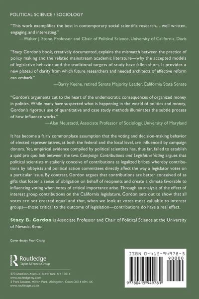 This book studies the current paradox within the voting literature on campaign contributions and legislative voting behavior. Specifically, while journalists and observers believe that the contributions significantly influence congressional votes, empirical evidence compiled by political scientists has generally failed to identify a systematic linkage between the two. At the same time, the amount of money contributed by interest groups is increasing and polls indicate that the public is becoming more cynical about the process.