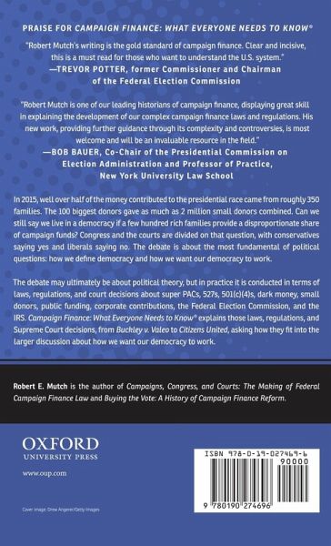 The one percent has been providing an ever larger share of campaign funds since the 1980s. Well over half of the money contributed to the presidential race in 2015 came from only about 350 families. One-fourth of it came from just seventy-eight donors, all of whom made contributions of $1 million or more. Can we still say we live in a democracy if a few hundred rich families provide such disproportionate shares of campaign funds? Congress and the courts are divided on that question, with conservatives saying yes and liberals saying no. The debate is about the most fundamental of political questions: how we define democracy, and how we want our democracy to work. The debate may ultimately be about political theory, but in practice it is conducted in terms of laws, regulations, and court decisions about PACs, super PACs, 527s, 501(c)(4)s, dark money, the Federal Election Commission, and even the IRS. This book explains how those laws, regulations, and court decisions fit into the larger debate about how we want our democracy to work.