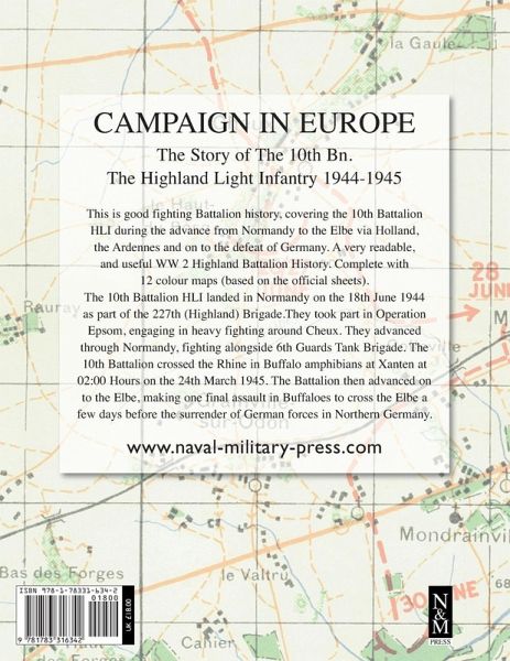 This is good fighting Battalion history, covering the 10th Battalion HLI during the advance from Normandy to the Elbe via Holland, the Ardennes and on to the defeat of Germany. A very readable, and useful WW2 Highland Battalion History. Complete with 12 colour maps (based on the official sheets). The 10th Battalion HLI landed in Normandy on the 18th June 1944 as part of the 227th (Highland) Brigade. They took part in Operation Epsom, engaging in heavy fighting around Cheux. They advanced through Normandy, fighting alongside 6th Guards Tank Brigade. The 10th Battalion crossed the Rhine in Buffalo amphibians at Xanten at 02:00 Hours on the 24th March 1945. The Battalion then advanced on to the Elbe, making one final assault in Buffaloes to cross the Elbe a few days before the surrender of German forces in Northern Germany.
