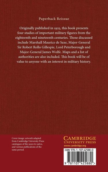 Originally published in 1925, this book presents four studies of important military figures from the eighteenth and nineteenth centuries. Those discussed include Marshall Maurice de Saxe, Major-General Sir Robert Rollo Gillespie, Lord Peterborough and Major-General James Wolfe. Maps and a list of authorities are also included. This book will be of value to anyone with an interest in military history.