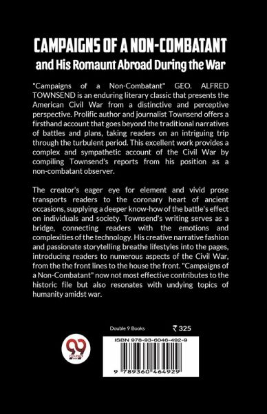 "Campaigns of a Non-Combatant" GEO. ALFRED TOWNSEND is an enduring literary classic that presents the American Civil War from a distinctive and perceptive perspective. Prolific author and journalist Townsend offers a firsthand account that goes beyond the traditional narratives of battles and plans, taking readers on an intriguing trip through the turbulent period. This excellent work provides a complex and sympathetic account of the Civil War by compiling Townsend's reports from his position as a non-combatant observer. The creator's eager eye for element and vivid prose transports readers to the coronary heart of ancient occasions, supplying a deeper know-how of the battle's effect on individuals and society. Townsend's writing serves as a bridge, connecting readers with the emotions and complexities of the technology. His creative narrative fashion and passionate storytelling breathe lifestyles into the pages, introducing readers to numerous aspects of the Civil War, from the the front lines to the house the front. "Campaigns of a Non-Combatant" now not most effective contributes to the historic file but also resonates with undying topics of humanity amidst war.