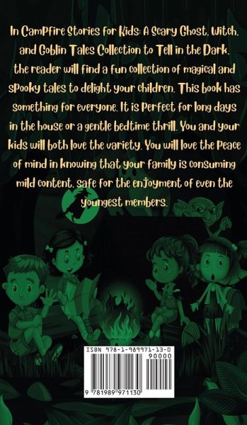 In Campfire Stories for Kids: A Scary Ghost, Witch, and Goblin Tales Collection to Tell in the Dark, the reader will find a fun collection of magical and spooky tales to delight your children. This book has something for everyone. It is perfect for long days in the house or a gentle bedtime thrill. You and your kids will both love the variety. You will love the peace of mind in knowing that your family is consuming mild content, safe for the enjoyment of even the youngest members. Have you been pushing your child to read more? Are you looking for something entertaining and exciting that your kids will love? Look no further than Campfire Stories for Kids: A Scary Ghost, Witch, and Goblin Tales Collection to Tell in the Dark. These stories are full of memorable characters that your family will love. Halloween can be all year round. Childhood can be an exciting and magical time in a child's life. Why not provide your little one media that encourages the growth of their imagination? These stories offer just the right amount of scary for kids while including tales of enchantment and magic. Each of the twenty chapters is a different narrative that your family will love. You can return to this book again and again. Visit swamps, kingdoms, and haunted forests. Enchanted creatures and mischievous monsters await you! Are you looking for a way to create a reliable wind-down period in the evenings? These stories are mild enough that they will not scar your child before bedtime but exciting enough to keep your little one engaged. This book strikes a good balance and makes for an easy way to add variety to your bookshelf. Studies have suggested that creating a relaxing routine in the evenings can encourage a more reliable and rejuvenating sleep. This book could be just the tool you have been looking for to give yourself a nighttime edge over insomnia. These stories are full of fascinating characters meant to take your child on a journey from the comfort of their own home. Read about spooky spirits and malevolent entities meant to thrill you and your family. This book does not contain gore or obscene language. Feeding the little horror fan in your life without exposing them to violent material, can be easier said than done. Campfire Stories for Kids: A Scary Ghost, Witch, and Goblin Tales Collection to Tell in the Dark was written with younger readers in mind. Short story books are gifts that keep on giving. Return to these stories again and again. Repeat them at your next campfire! Alter details and make these tales your own. You do not have to wait for October to indulge in a scary story. Thrills are perfect all year round. Bring a little spooky back into your house. Use this book to create some wonderful bonding moments with your little one.