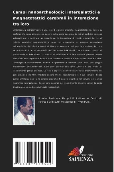 L'intelligenza extraterrestre è una rete di colonie arcaiche magnetotattiche. Nasce su porfirine che sono generate sui generis sulla forma quantica. Le reti di porfirine possono autoreplicarsi e costituire un modello per la formazione di viroidi e prioni. Le reti di colonie arcaiche magnetotattiche sono reti estremofile e possono sopravvivere nell'ambiente dei climi estremi di Marte e Venere e nel gas interstellare. La rete extraterrestre di archi estremofili può secernere RNA viroidi che formano consorzi di quasi-specie di RNA viroidi. I consorzi di quasi-specie a RNA viroidale possono essere modificati dalla digossina arcaica che conferisce identità e specializzazione alla rete. L'intelligenza extraterrestre arcaica magnetotattica impatta sulla Terra con piogge meteoritiche che forniscono nuovi geni cosmici alla Terra. Questa è una forma di trasferimento genico cosmico. La Terra è popolata dall'homo sapiens e il trasferimento dei geni arcaici e dell'RNA viroidale genera l'homo neanderthalis e il suo cervello. Esiste quindi un'interazione tra le colonie arcaiche di calcolo quantico nel cervello e il campo magnetico intergalattico. Questi sono generati dal trasferimento di geni cosmici da parte di reti arcaiche mediate da impatti meteoritici.