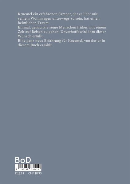 Kruemel ein erfahrener Camper, der es liebt mit seinem Wohnwagen unterwegs zu sein, hat einen heimlichen Traum.Einmal, genau wie seine Menschen früher, mit einem Zelt auf Reisen zu gehen. Unverhofft wird ihm dieser Wunsch erfüllt. Eine ganz neue Erfahrung für Kruemel, von der er in diesem Buch erzählt.