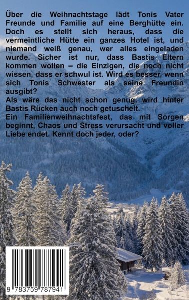 Über die Weihnachtstage lädt Tonis Vater Freunde und Familie auf eine Berghütte ein. Doch es stellt sich heraus, dass die vermeintliche Hütte ein ganzes Hotel ist, und niemand weiß genau, wer alles eingeladen wurde. Sicher ist nur, dass Bastis Eltern kommen wollen - die Einzigen, die noch nicht wissen, dass er schwul ist. Wird es besser, wenn sich Tonis Schwester als seine Freundin ausgibt? Als wäre das nicht schon genug, wird hinter Bastis Rücken auch noch getuschelt. Ein Familienweihnachtsfest, das mit Sorgen beginnt, Chaos und Stress verursacht und voller Liebe endet. Kennt doch jeder, oder?
