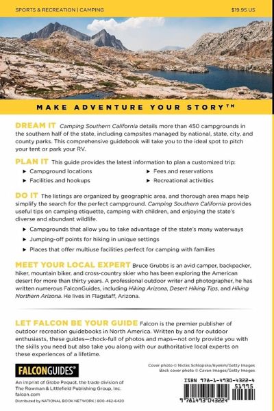 This fully updated and revised guide to over 450 public campgrounds in Southern California is perfect for tent and RV campers alike. Within each campground listing is vital information on location, road conditions, fees, reservations, available facilities, and recreational activities. The listings are organized by geographic area, and thorough site maps will simplify the search for the perfect campground. Southern California offers a surprising array of quiet, out-of-the-way parks replete with lakes, rivers, rugged hills, and even rocky cliffs. Camping Southern California provides useful tips on camping etiquette and enjoying-or avoiding-the region's diverse and abundant wildlife. Look inside for: * Campground locations * Facilities and hookups * Fees and reservations * GPS coordinates for each campground * Recreational activities * What equipment and clothing to bring