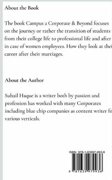 The book Campus 2 Corporate & Beyond focuses on the journey or rather the transition of students from their college life to professional life and after in case of women employees. How the women folks look at their career after their marriages. What are the success profile in the corporates