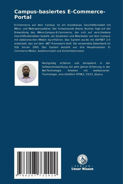 E-Commerce auf dem Campus ist ein brandneues Geschäftsmodell mit Mikro- und Makroperspektive. Der Schwerpunkt dieses Buches liegt auf der Entwicklung des Mikro-Campus-E-Commerce, der sich auf verschiedene Geschäftsaktivitäten bezieht, die Studenten und Mitarbeiter auf dem Campus mit elektronischen Mitteln durchführen. Das System wurde mit ASP.NET 2.0 entwickelt, das auf dem .NET Framework läuft. Die verwendete Datenbank ist SQL Server 2005. Das System besteht aus drei Hauptmodulen: E-Commerce-Modul, Auktionsmodul und Sicherheitsmodul.