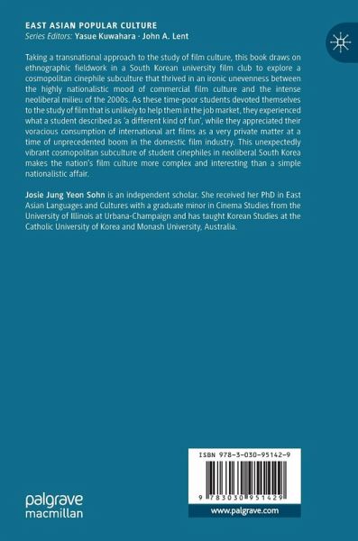 Taking a transnational approach to the study of film culture, this book draws on ethnographic fieldwork in a South Korean university film club to explore a cosmopolitan cinephile subculture that thrived in an ironic unevenness between the highly nationalistic mood of commercial film culture and the intense neoliberal milieu of the 2000s. As these time-poor students devoted themselves to the study of film that is unlikely to help them in the job market, they experienced what a student described as 'a different kind of fun', while they appreciated their voracious consumption of international art films as a very private matter at a time of unprecedented boom in the domestic film industry. This unexpectedly vibrant cosmopolitan subculture of student cinephiles in neoliberal South Korea makes the nation's film culture more complex and interesting than a simple nationalistic affair.