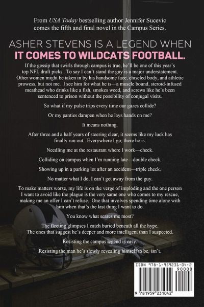 Asher Stevens is a legend when it comes to Wildcat football. If the gossip that swirls through campus is true, he'll be one of this year's top NFL draft picks. To say I can't stand the guy is a major understatement. Other women might be taken in by his handsome face, chiseled body, and athletic prowess, but not me. I see him for what he is-a muscle bound, steroid-infused meathead who drinks like a fish, smokes weed, and screws like he's been sentenced to prison without the possibility of conjugal visits. So what if my pulse trips every time our gazes collide? Or my panties dampen when he lays hands on me? It means nothing. After three and a half years of steering clear, it seems like my luck has finally run out. Everywhere I go, there he is. Needling me at the restaurant where I work-check. Colliding on campus when I'm running late-double check. Showing up in a parking lot after an accident-triple check. No matter what I do, I can't get away from the guy. To make matters worse, my life is on the verge of imploding and the one person I want to avoid like the plague is the very same one who comes to my rescue, making me an offer I can't refuse. One that involves spending time alone with him when that's the last thing I want to do. You know what scares me most? The fleeting glimpses I catch buried beneath all the hype. The ones that suggest he's deeper and more intelligent than I suspected. Resisting the campus legend is easy. Resisting the man he's slowly revealing himself to be, isn't.