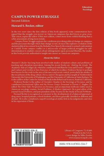 Campus Power Struggle traces the explosive evolution of the student political movement from the Berkeley Free Speech Movement of 1964 to armed confrontation at Cornell in 1969. From campus conflict as a microcosm of larger political struggles for self-determination, to student concern about infringements upon personal liberties, the studies in this book provide authoritative insight into unrest on American campuses. This volume represents sociology as the "big news" in its most impressive and involved style. No.l in the series.Contents: Introduction - The Struggle for Power on the Campus (Howard S. Becker). Beyond Berkeley (Joseph Gusfleld). Columbia: The Dynamics of a Student Revolution (Ellen Kay Tnmberger). The Crisis at San Francisco State (James McEvoy and Abraham Miller). Confrontation at Cornell (William H. Fried/and and Harry Edwards'). The Phantom Racist (Rita James Simon and James Carey). Dynamic Young Fogies-Rebels on the Right (Lawrence F. Schiff). Ending Campus Drug Incidents (Howard S. Becker). The Psychiatrist as Double Agent (Thomas Szasz). Student Power in Action (Arlie Hochschild).