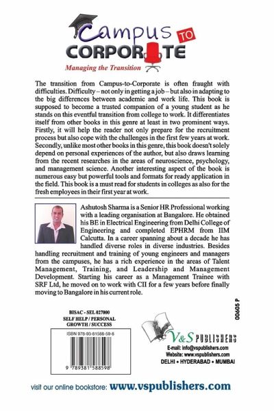 The transition from Campus-to-Corporate is often fraught with difficulties. Difficulty - not only in getting job - but also in adapting to the big differences between academic and work life. This book is supposed to become a trusted companion of a young student as he stands on this eventful transition from college to work. It differentiates itself from other books in this genre at least in two prominent ways. Firstly, it will help the reader not only prepare for the recruitment process but also cope with the challenges in the first few years at work. Secondly, unlike most other books in this genre, this book doesn't solely depend on personal experiences of the author, but also draws learning from the recent researches in the areas of neuroscience, psychology, and management science. Another interesting aspect of the book is numerous easy but powerful tools and formats for ready application in the field. This book is a must read for students in colleges as also for the fresh employees in their first year at work.