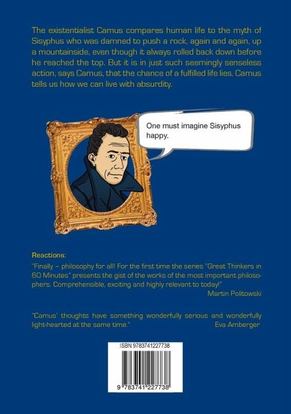 Albert Camus was a legend in his own lifetime, as a successful author, a philosopher and a "ladies' man". His philosophical discoveries remain provocative even today. Because, like all great philosophers, Camus posed the question of the meaning of life. But his answer to this question was an answer of an entirely new kind. This question as to the meaning of life has been answered, of course, very differently down the centuries. For Plato it is 'the Good' that holds the world together; for Hegel the 'World-Spirit'; for Marx the relations of production; for Sartre freedom; for Nietzsche 'will to power'. Really, each philosopher has his own answer to this question. But Camus is the exception here. He has none. Or rather, worse: he has an answer, but one of very sobering effect. His answer to the question 'what is the meaning of life?' is simply 'It has no meaning. Life is absurd'. We plan ahead and make decisions, but in the last analysis our whole life depends on a series of chanceevents over which we have no control. Nor is there really a goal. Nevertheless, it is our task to live proudly and undauntedly on. Camus compares the life of Man with the myth of Sisyphus. The mythical Sisyphus strained tirelessly to push a boulder up a mountainside, even though it always rolled back down before he reached the top. But precisely in this apparently senseless and absurd activity lay, argued Camus, a chance for a fulfilled life. The book "Camus in 60 Minutes" explains, using selected quotations and examples, this theory of "the absurd". The chapter on "what use Camus' discovery is for us today" describes the "absurd style of life" that Camus recommends. Camus' colourful examples of "absurd life-projects", and his descriptions of how one best confronts "the absurd" itself and leads a life without God or ideological orientation are, above all in our modern societies, of powerful relevance and topicality. The book forms part of the popular series "Great Thinkers in 60 Minutes".