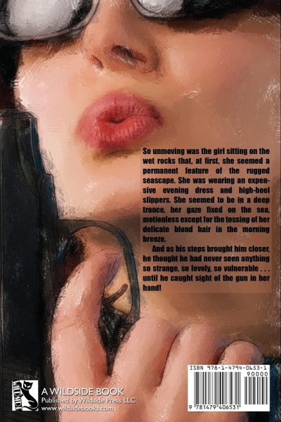 So unmoving was the girl sitting on the wet rocks that, at first, she seemed a permanent feature of the rugged seascape. She was wearing an expensive evening dress and high-heel slippers. She seemed to be in a deep trance, her gaze fixed on the sea, motionless except for the tossing of her delicate blond hair in the morning breeze. And as his steps brought him closer, he thought he had never seen anything so strange, so lovely, so vulnerable ... until he caught sight of the gun in her hand!